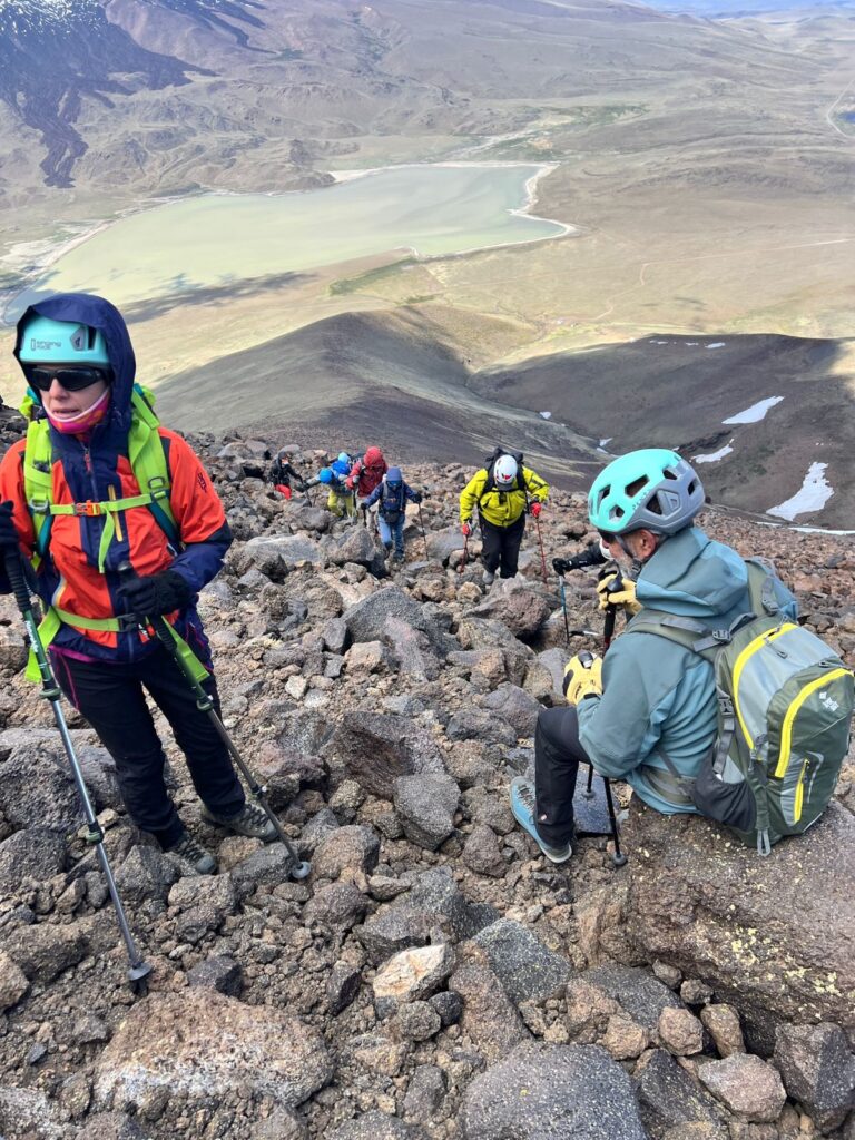El cerro Wayle , de 3.296 metros de altura, está dentro del Parque Provincial Tromen. Está ubicado a 48 kilómetros de Chos Malal, en la provincia de Neuquén. Saliendo del refugio que se encuentra en la base, varios socios y socias lo ascendieron el 17 de noviembre, sorteando los últimos vestigios de la nieve de un invierno intenso.
