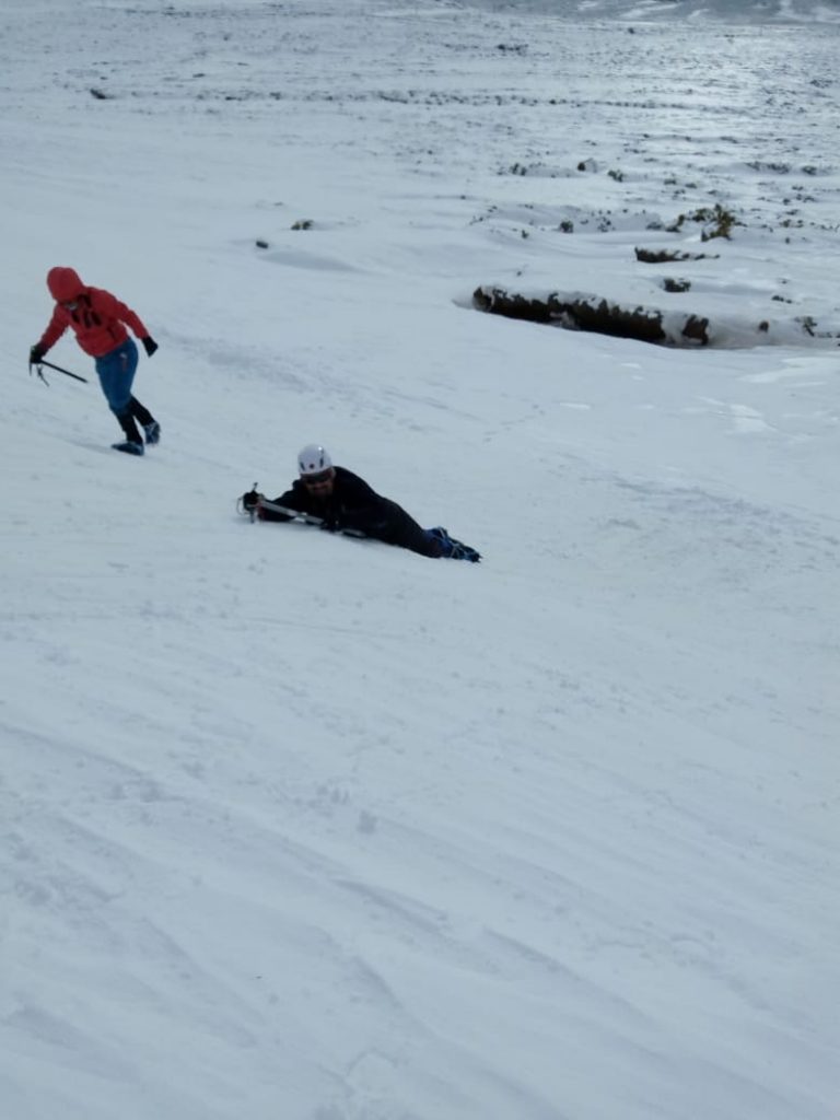 Con el objetivo de contribuir a la formación a los efectos de hacer de la montaña una actividad lo más segura posible, un número importante de socios participó de las prácticas de uso de crampones y de raquetas y llevó a cabo ejercicios de autodetención en la Atravesada el día 20 de junio.